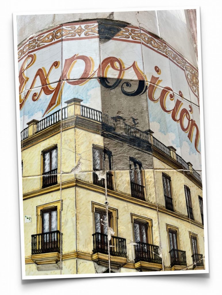 Me di cuenta, viendo en casa las fotos que tomé esos día en Sevilla, que alguien había hecho un grafiti tratando de reparar una rotura en un azulejo que debe llevar muchas décadas en la esquina de una de las calles comerciales del centro.