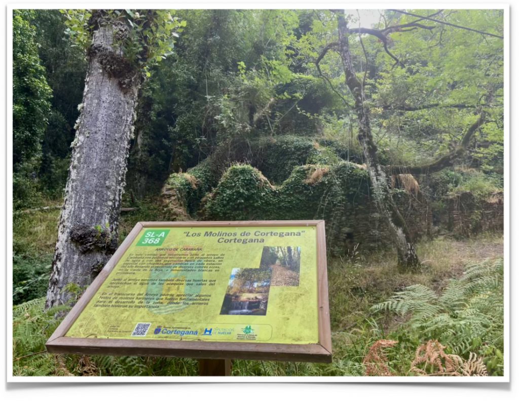 Os dejo un cartel informativo del sendero o del paseo, como queráis llamarlo y un consejo. Yo suelo hacerlo al revés: bajo por el camino de Los molinos y subo de vuelta al pueblo por el de la Alameda. Creo que es más fácil bajar la cuesta de Los molinos, que tiene más pendiente, y subir la de la Alameda, que parecería casi aterrazada por el viejo empedrado. Pero, elegid vosotros.